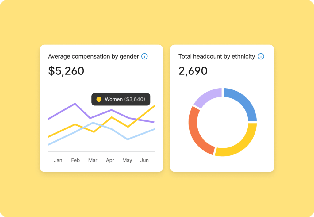 Better understand diversity and equity within your business. Our DE&I dashboard enables you to collect demographic information, see distribution analysis across your workforce, and more.