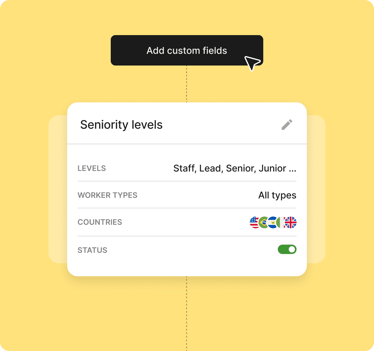 Whether it’s custom fields and documents or creating an HR stack to support unique company structures, Deel HR can easily flex to suit the unique needs of your business—without months of set-up time. And we support global teams of all sizes, so you can be sure that we can scale with you.